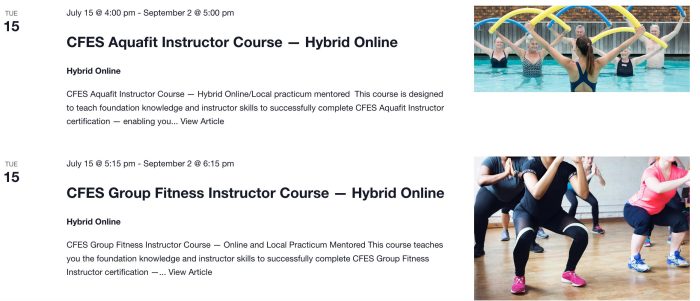 Just a quick blog to let you know about our summer semester CFES Aquafit Instructor and Group Fitness Instructor Certification Courses! These hybrid courses are perfect for anyone looking to lead dynamic water or land-based fitness classes.